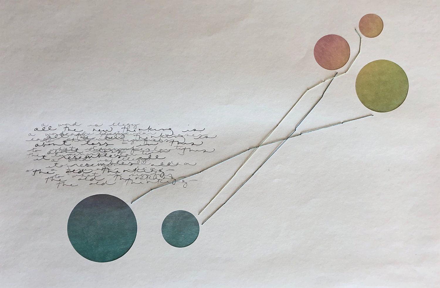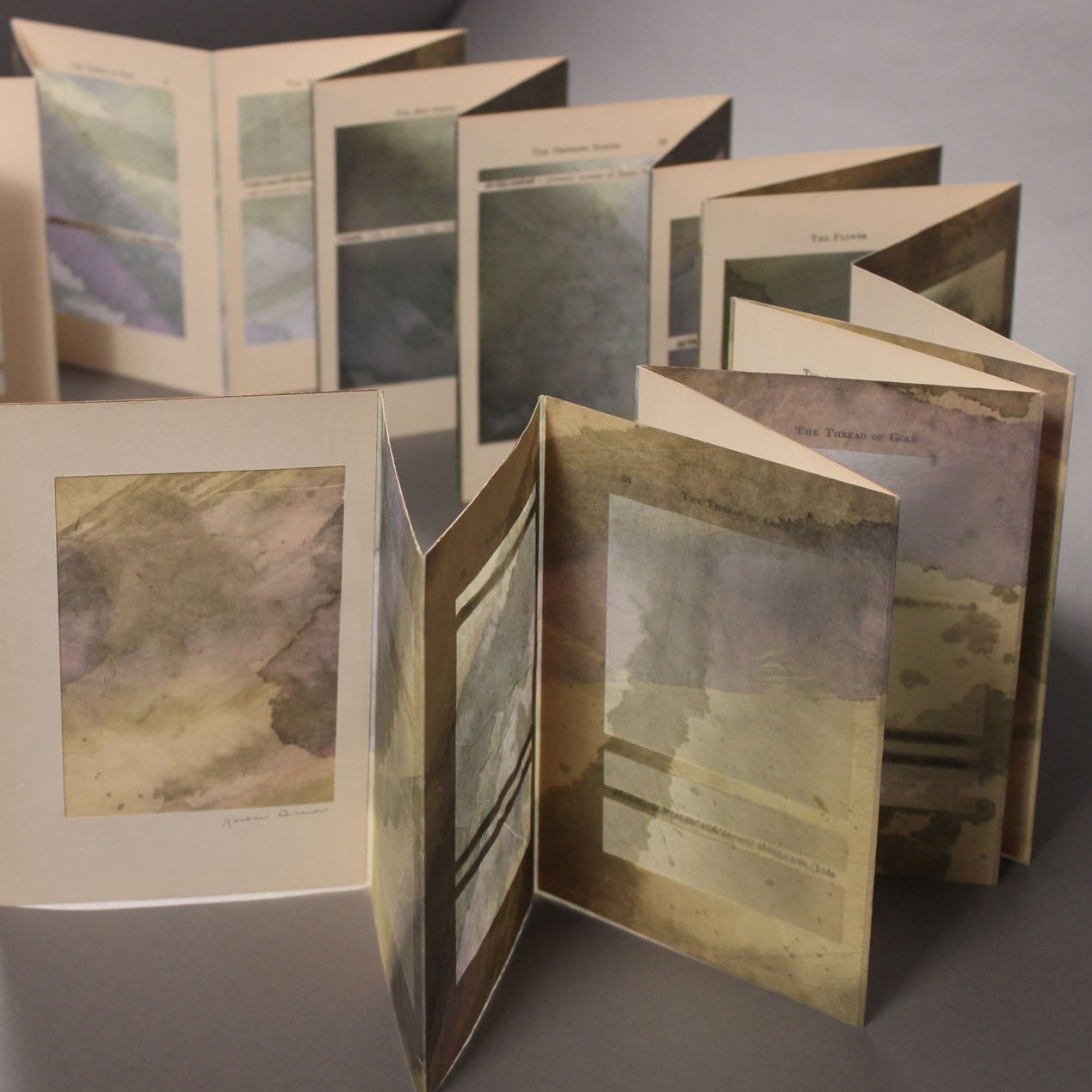 As anyone who has peered over the precipice of one of Dickinson’s dashes, or has lingered over delicate serifs, the striving ascenders and descender of an italic if knows, through language and its accoutrements, all the world is held at the edge of a single stroke; and, what we have as tools are the best approximations we can craft for translating thought to word, idea to form: the book being paramount in our efforts. Built from the smallest elements of language, of layering, mark-making, handwriting and handwork, my work aims to enact an idea articulated by Robert Bringhurst, namely, “a book…is a branching, leafing, flowering structure, unfolding in the mind, where it can find the space it needs….The design of books has meaning because it gives visible form to those invisible realities.”